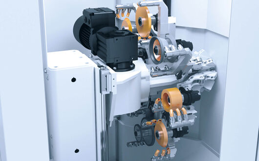 Mecanizado eficiente de herramientas de metal duro con un diámetro de hasta 150 milímetros (la cinemática de la máquina permite también diámetros más grandes, en función del alimentador). Están disponibles diversas opciones de automatización.