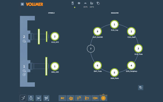 - Gestión sencilla de las muelas abrasivas y los electrodos de rotación con el administrador de herramientas VOLLMER