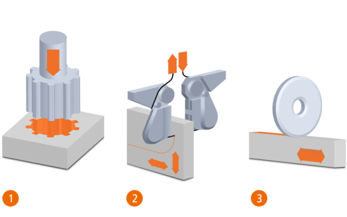 Zasadniczo rozróżniamy trzy rodzaje procesów obróbki erozyjnej: drążenie, obróbka erozyjna drutem oraz obróbka erozyjna elektrodą obrotową/ erozja obrotowa.