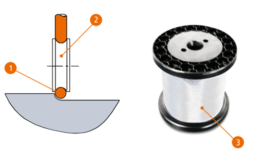 Erozja elektryczna odbywa się pomiędzy stale odnawianym prętem elektrody a krawędzią tnącą z PCD przy zachowaniu minimalnej szczeliny roboczej. Pręt erodujący jest prowadzony przez dwa pryzmaty wzdłuż krawędzi tnącej narzędzia. Mały promień pręta umożliwia wykonywanie na narzędziu promieni do 0,1 mm.